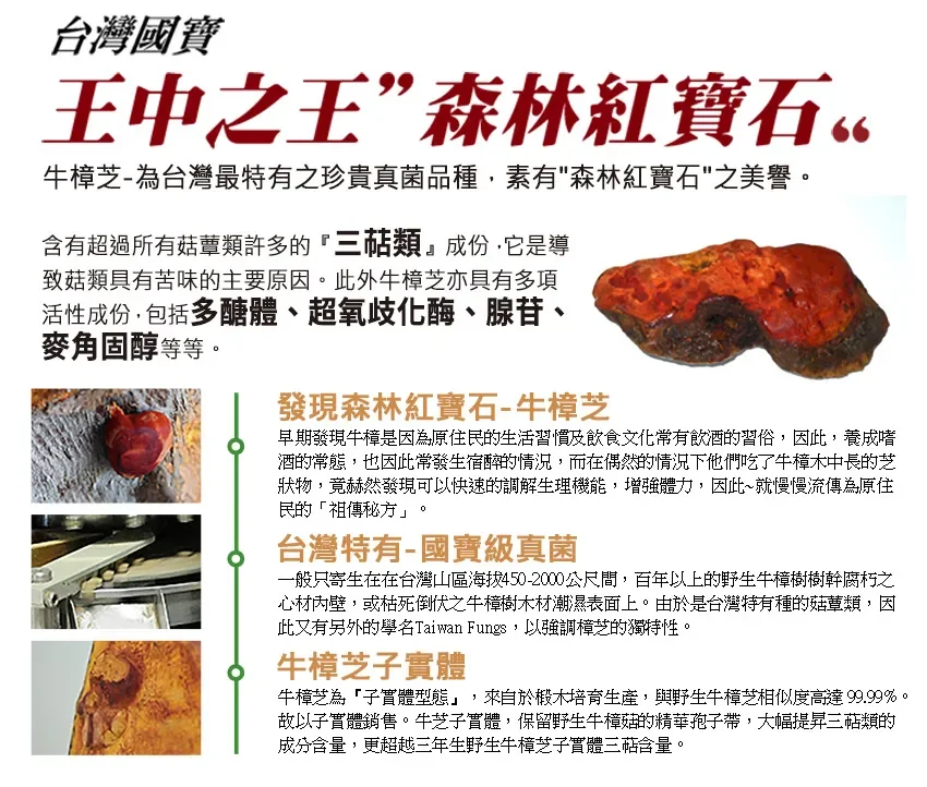 現代醫學表明,「牛樟芝」是調節免疫、輔助肝臟凈化、保肝護肝的好幫手,用於抗氧化抗衰老、抗疲勞、降血壓、治療肝炎、輔助治療癌症,改善喝酒熬夜引起的肝火燥熱、食物藥物中毒以及腹瀉相關疾病有一定療效。「牛樟芝」因具有良好的效果,和「抗癌聖品」的美譽價格一度高漲!